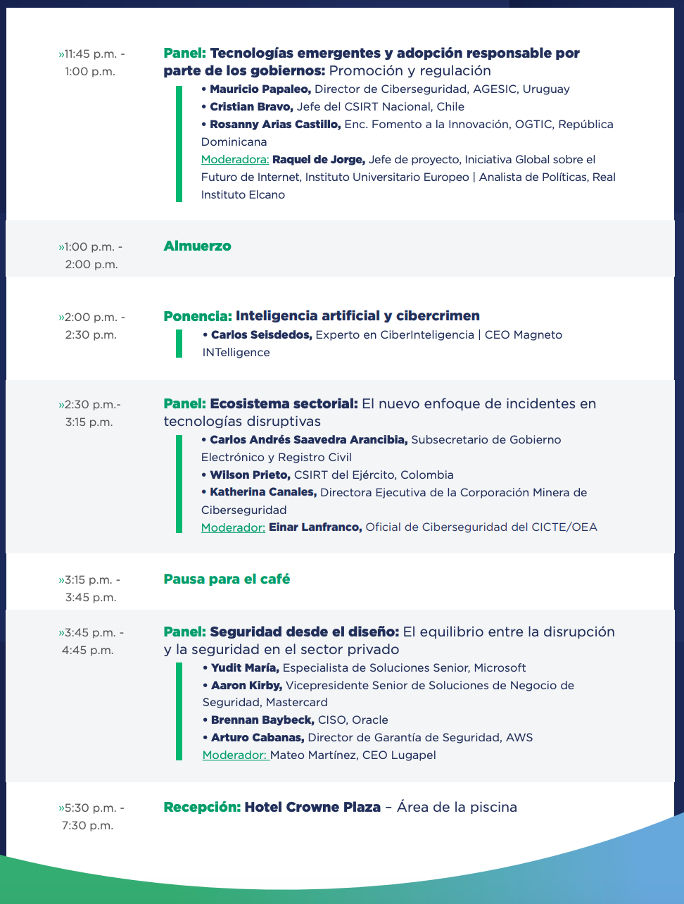 Este día se cerró hablando sobre la seguridad y privacidad de la información desde el diseño de las soluciones y productos que creamos. Si somos una startup y queremos que todo salga rápido y bien, adoptemos infraestructura como código y tengamos plantillas que sabemos que son seguras para que cada desarrollador pueda levantar algo nuevo con todas las capas de seguridad necesarias definidas desde el primer minuto. Internamente, tengamos programas dentro de las empresas que recompensen a quienes fomentan la ciberseguridad y la privacidad de la información en sus equipos, autorregulémonos si la ley aún no está ahí y apuntemos siempre para arriba para lograr una ventaja competitiva. Externamente, seamos transparentes con todo lo relacionado al uso de datos, en particular si estamos usando inteligencia artificial. Que Microsoft y GitHub le hayan puesto “copiloto” a sus asistentes de IA es por algo: recordar que los humanos (los “pilotos” en la metáfora que nos deja Microsoft) son los responsables finales de las decisiones que se tomen con la inteligencia artificial.