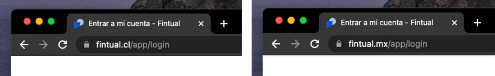 ¿Cómo saber si estás en Fintual o en otro sitio? Tienes que mirar la URL (que es la dirección que aparece arriba en la barra de direcciones) y tienes que fijarte que el dominio sea fintual.cl en caso de que estés en Chile, o fintual.mx en caso de que estés en México.