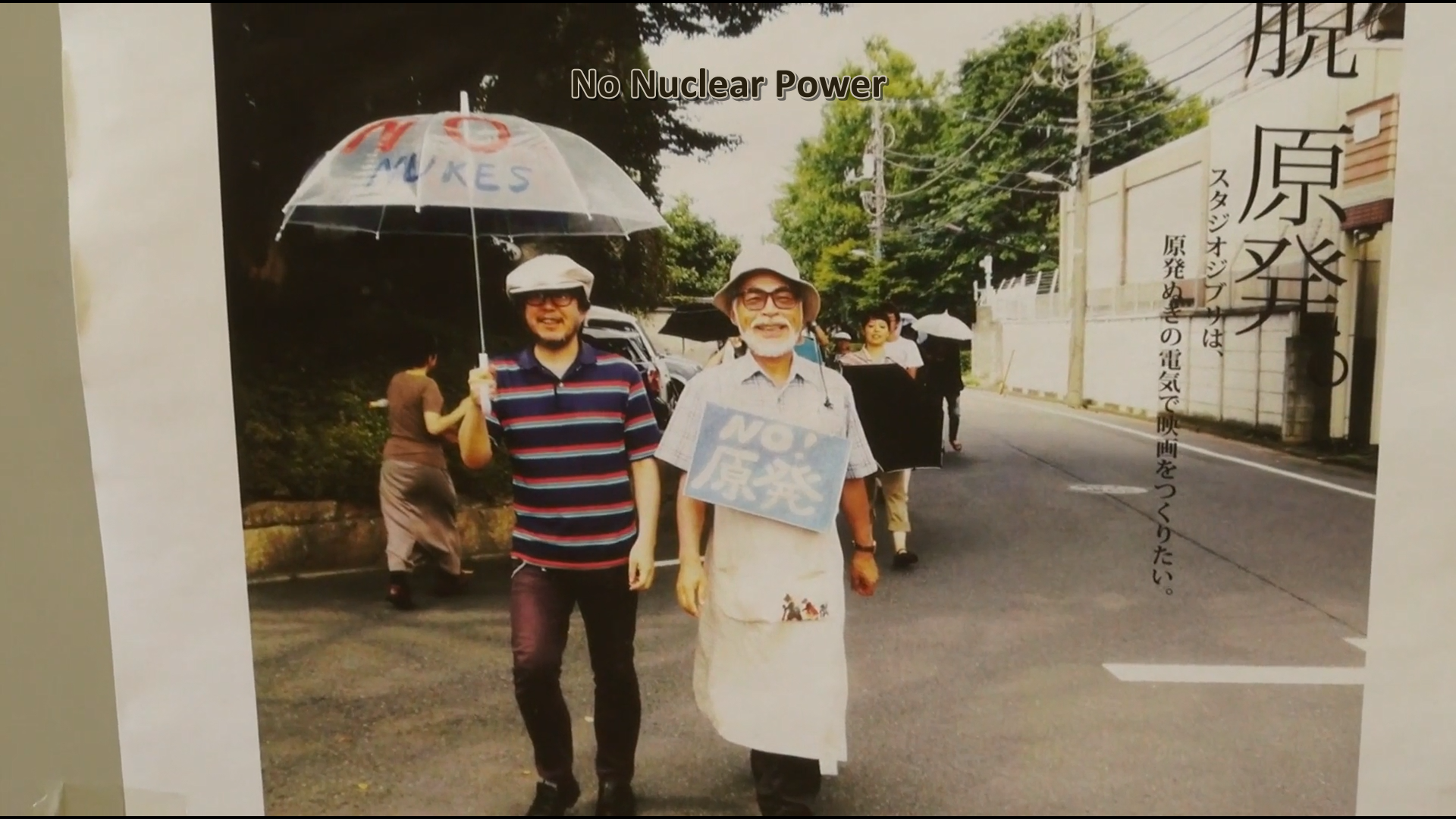 La pancarta que se desplegó en 2011 en los techos del estudio Ghibli como protesta contra el uso de energía nuclear, así como sus publicaciones contra la derecha por sus intentos de revisar la constitución para permitir que Japón inicie conflictos bélicos, son protestas en contra de un mundo que se cierra a la escucha y quiere negar la diversidad humana y no humana.