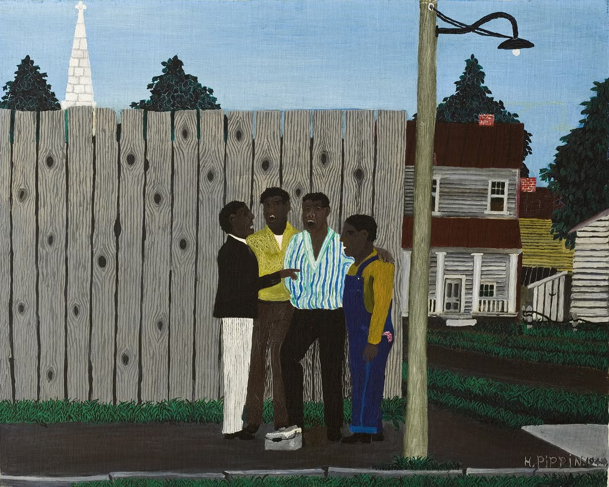 Horace Pippin, para mí, es el reverso de la pintura de mitad de siglo XX norteamericana. Mientras Norman Rockwell y John Phillip Falter mostraban el optimismo radical de una sociedad de posguerra, que sentaba las bases de la personalidad norteamericana consumista, feliz y segura; Pippin mostraba el lado que no se veía: la segregación racial, la pobreza, la historia manchada de sangre. Lo lógico hubiese sido hacerlo con un estilo clásico, lúgubre e incluso un poco trágico, pero Pippin lo hace desde la ingenuidad y la alegría de los colores, dejándote la duda de si todo es irónico o simplemente Pippin veía el mundo así, segregado pero lleno de colores.