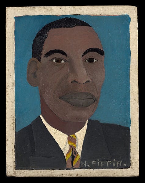 De Pippin, solo tenemos dos autorretratos, y que reflejan bastante bien su estilo a medio camino entre el realismo –no el realismo fotográfico, sino uno que documenta lo que ve– y su vanguardismo estético.