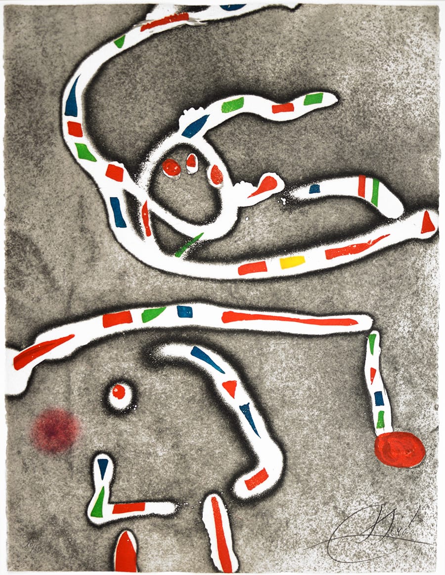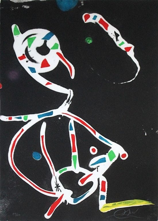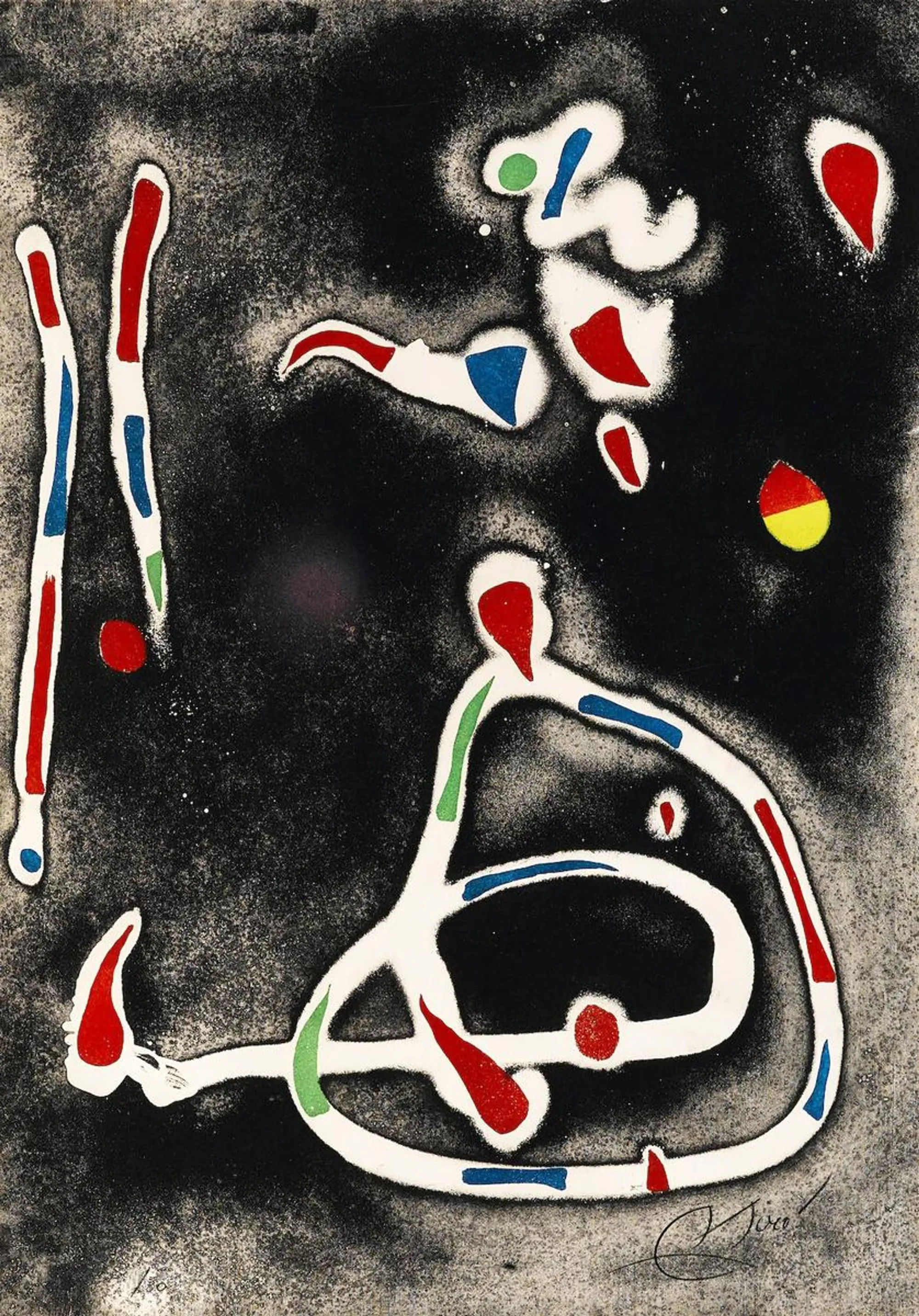 Fuegos artificiales y Joan pegan bien: la obra de Miró siempre estuvo marcada por el surrealismo más militante, ese que creía que había que dejar al inconsciente libre para que hiciera su trabajo, ya fuese escribiendo o en su caso, pintando. Por eso cada vez optaba por métodos más automáticos, siempre conservando su estilo naïf y un poco infantil.