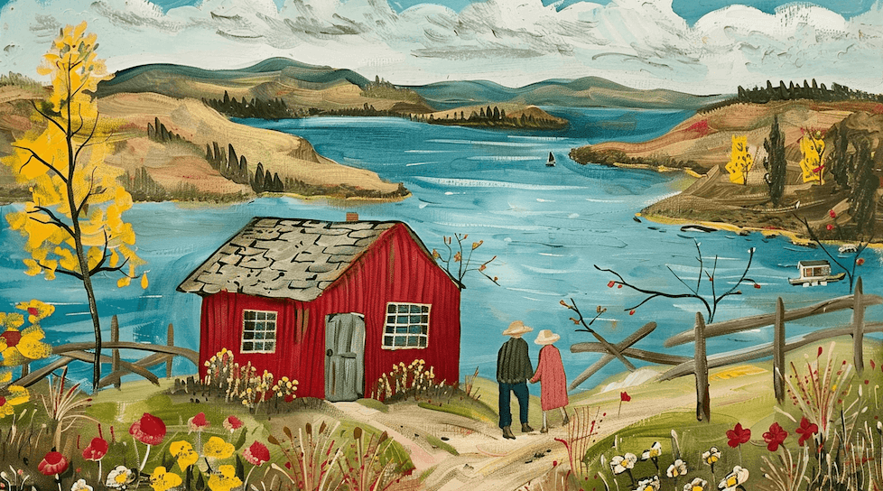 Lewis nació y vivió toda su vida en la región canadiense de Nueva Escocia, bien alejada de todo. De ahí vienen los temas de sus pinturas: paisajes llenos de lagos, costas, árboles y animales. Casas campestres y una vida casi bucólica.