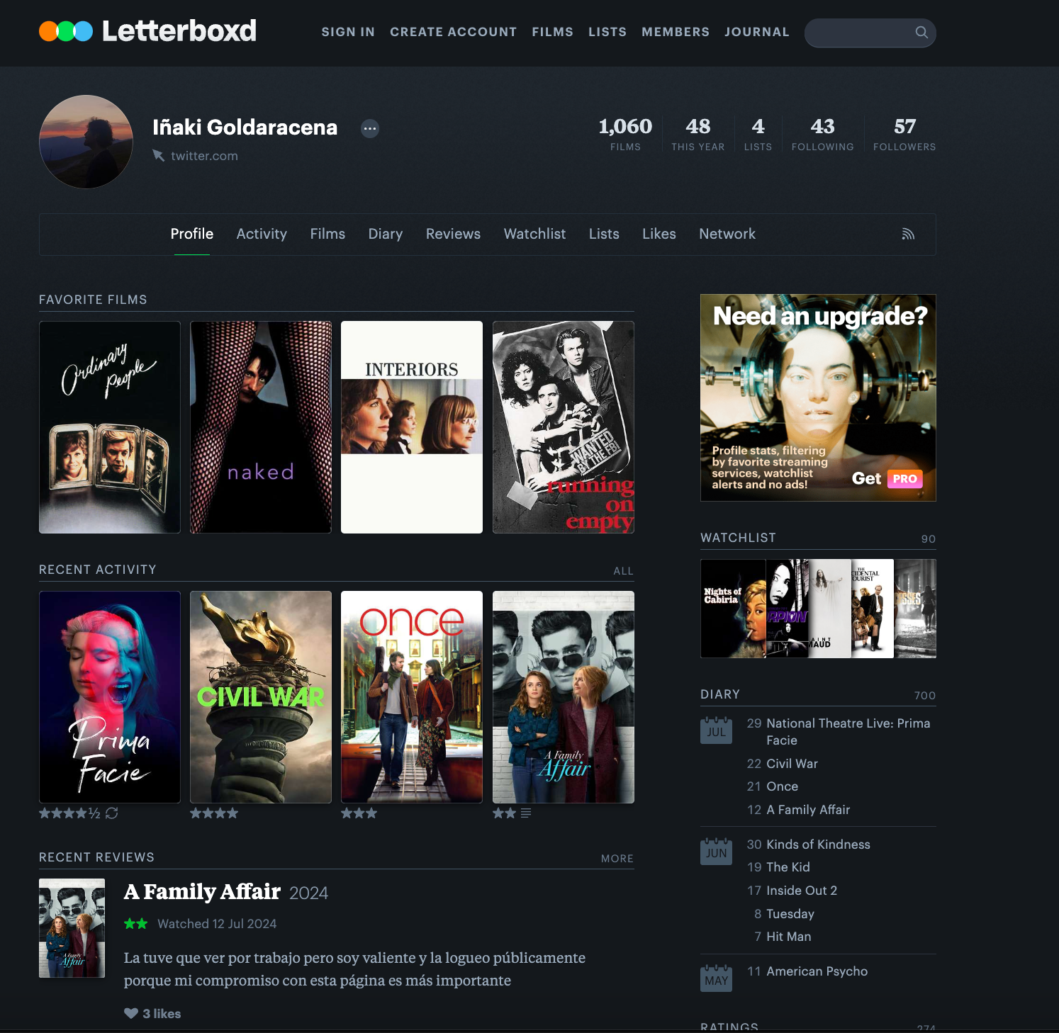 Si esto no es una invitación directa a ser parte de esta comunidad, al menos que sea una forma positiva de mirar el fenómeno. Porque cuenta con el logro de mantener vivo el interés por el cine en una generación que podría haber ido perdiendo esta curiosidad. Letterboxd ayuda a empezar el viaje cinéfilo de mucha gente, a buscar recomendaciones que amplíen nuestros panoramas culturales, a conectar gente que comparte una pasión y a simplemente tranquilizar obsesivos que quieren llevar la cuenta de las miles de películas que han visto.