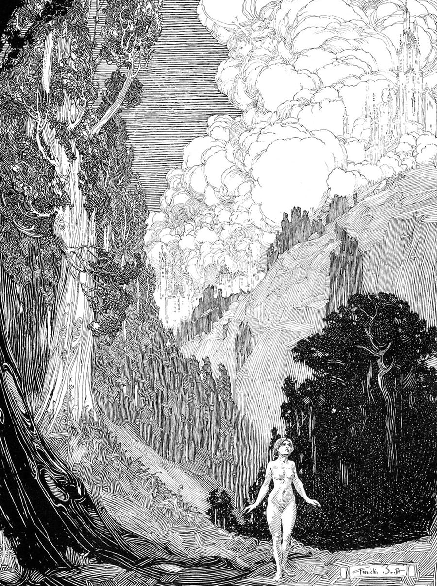 Otro dato curioso de Franklin Booth que conocí hace poco, fue que durante los años en que era considerado el mejor ilustrador de lápiz y tinta en Estados Unidos, formó parte de una moda que no puedo dejar de aplaudir. Booth fue uno de los primeros diseñadores de ex-libris, algo así como los timbres que se usan para marcar los libros. Una manera elegante de decirle al clásico ladrón de libros "hey, flaco, este libro pertenece a Patricio Sullivan" (algo que, por cierto, nunca ha detenido a los ladrones de libros). Booth diseñaba por encargo estos timbres, y hubiese sido increíble tener un ex-libris de nubes diseñado por él