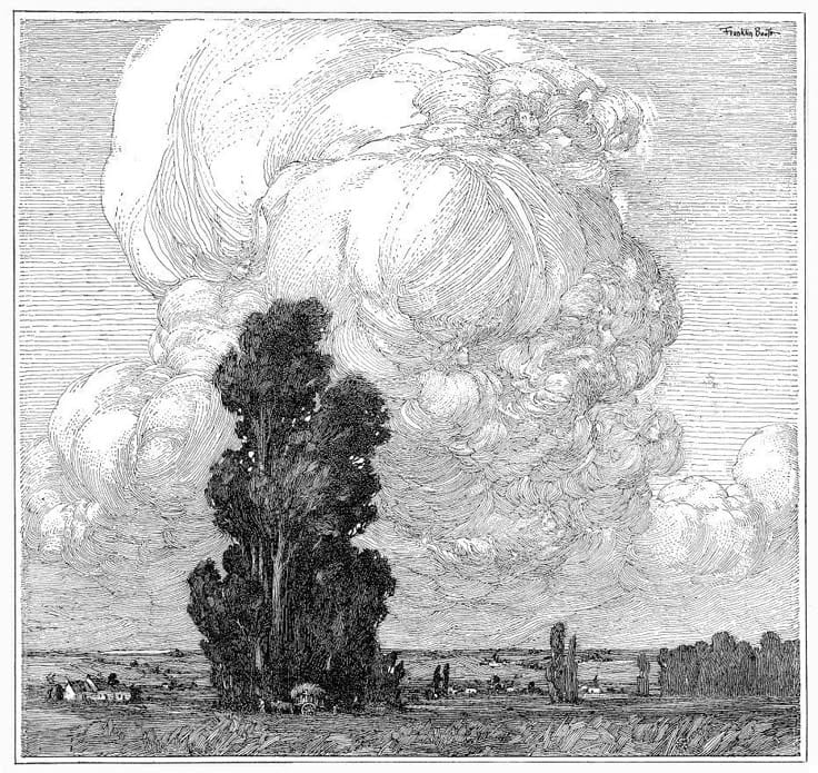 Diría que Booth es mi dibujante de nubes favorito, aunque la competencia no es sencilla de dirimir. Tal vez en un futuro tenga el tiempo de hacer un top 5 de pintores de nubes.