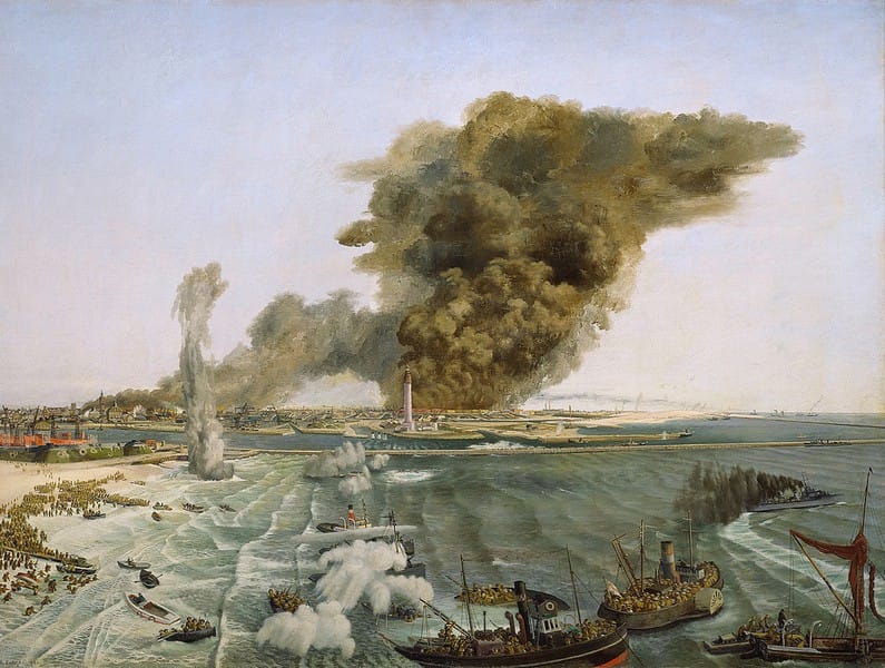 Estos son tal vez los momentos más interesantes de su obra. Pero Eurich ya estaba asentado en el sur de Inglaterra en una vida semi jubilada pintando el agua, cuando decidió –por suerte– complicársela una última vez: en junio de 1940, Eurich escribió al Comité Asesor de Artistas de Guerra (WAAC) sugiriendo la retirada de Dunkerque como tema. Aunque el WAAC ya le había encargado a Charles Cundall un gran cuadro sobre la retirada, aceptaron la sugerencia de Eurich.
