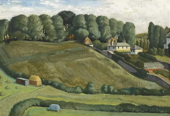 Barcos, edificios del sur de inglaterra, playas, agua, el estuario. Pero al poco recorrer sus pinturas te encuentras con figuras humanas y paisajes un poco peculiares, seguramente producto del consejo que le diera Wood años atrás:
