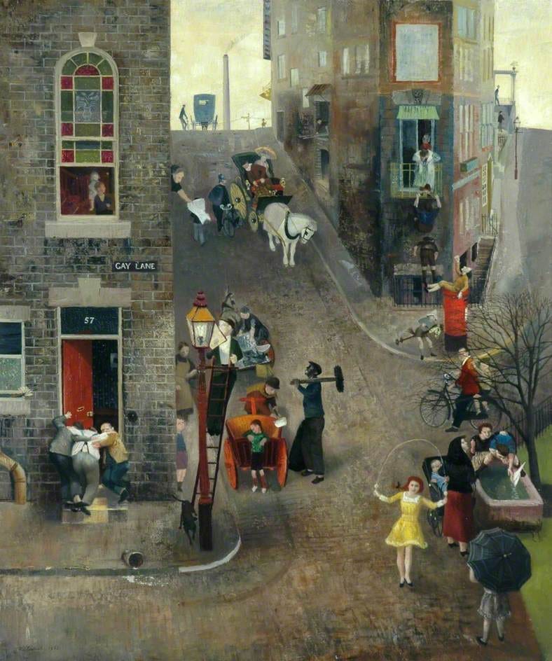 El estilo de Eurich te descoloca. Por los años en que pintó podría asociarse a cierto movimiento de arte pop, a un Hockney más opaco o incluso a LS Lowry, pero la verdad es que entre aguas y guerras, es bastante único.