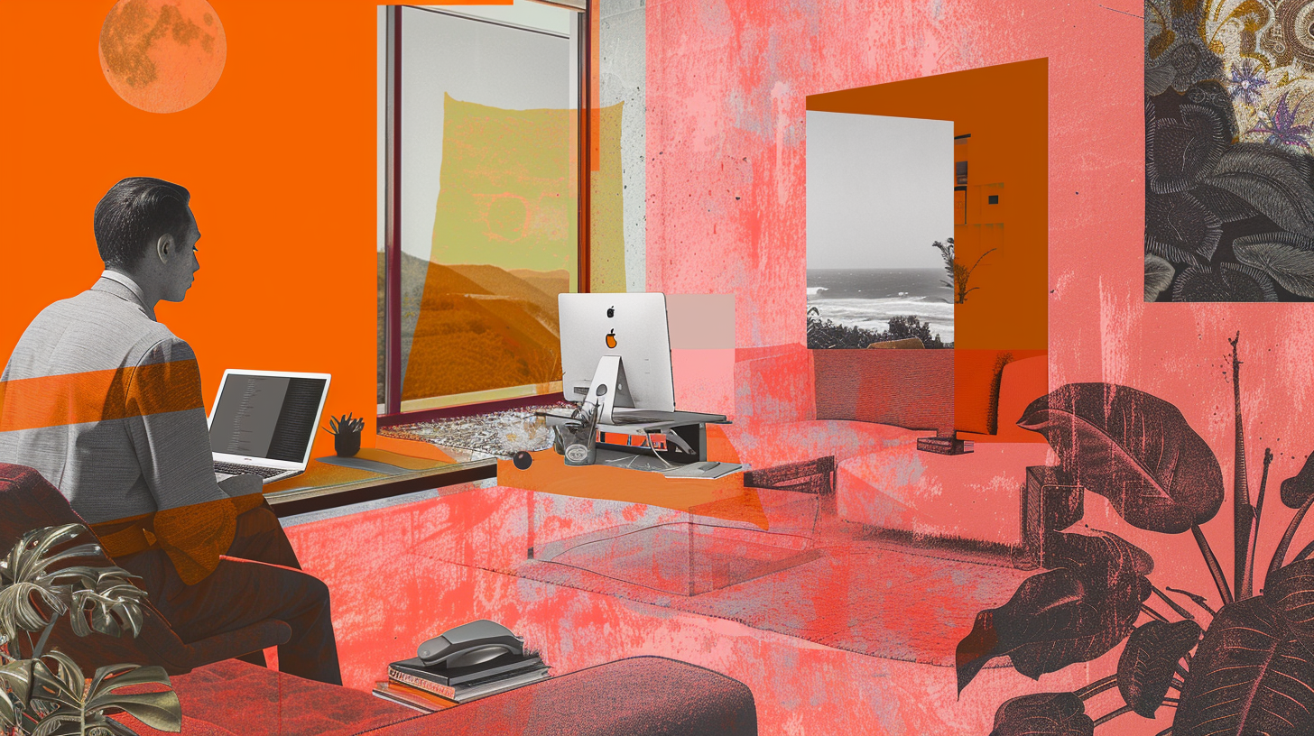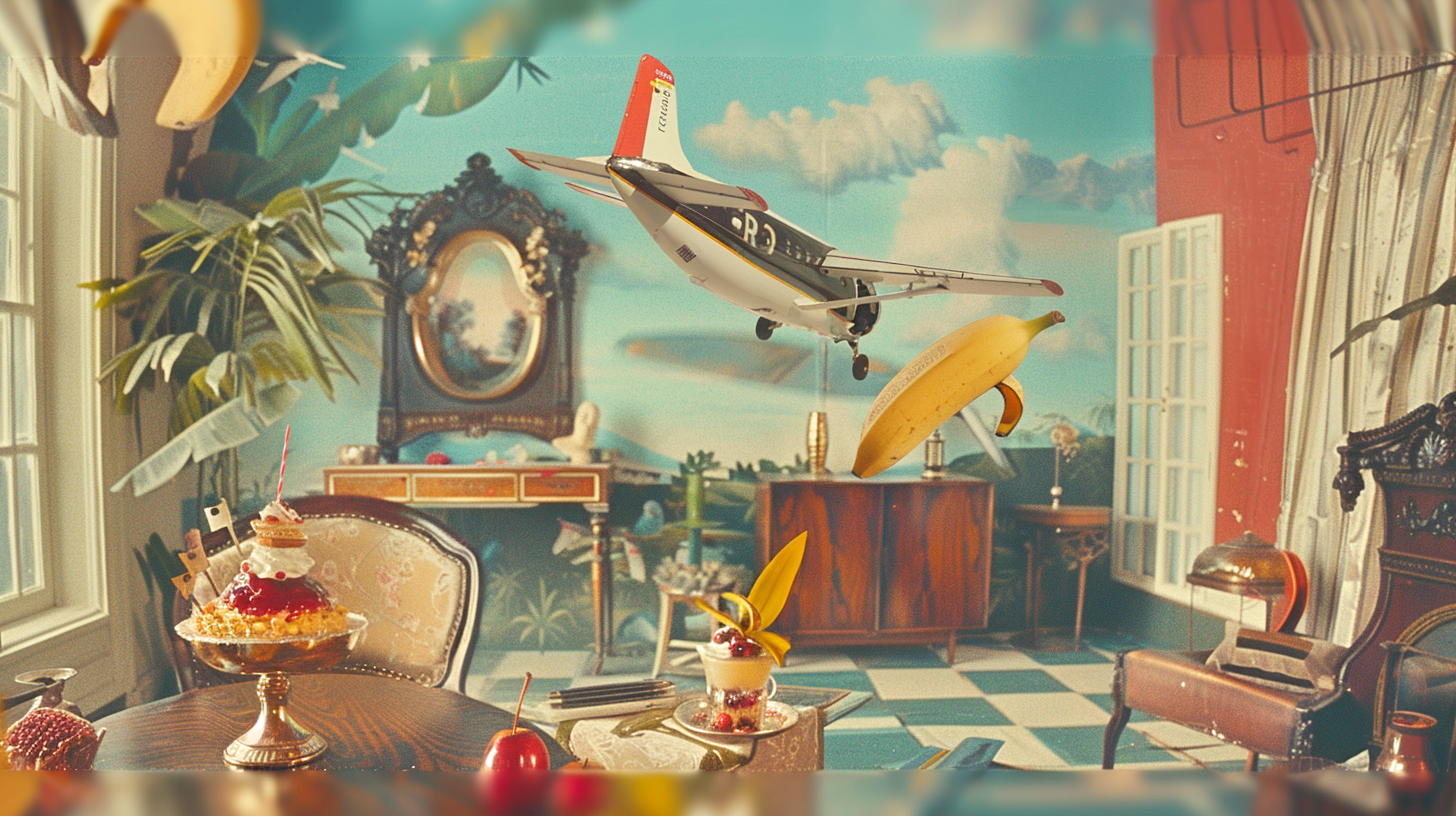 a collage by Richard Hamilton where you can see a 42-year-old white mexican man with a thinking face looking at a laptop in his living rooman image inspired by the style of Richard Hamilton, paying careful attention to his characteristic brushwork and color palette. The composition portrays a classic room as a backdrop, serving as a canvas for the collage-style overlay. Within this surrealistic scene, introduce unexpected elements: an airplane suspended mid-flight, videogame console, and an elegant Thonet chair. Embrace the whimsical juxtaposition of these objects, playing with scale and perspective to create a visually captivating narrative. Infuse the scene with Hamilton's trademark vibrancy and dynamism, using bold strokes and rich hues to evoke the essence of his artistic legacy.a collage by Richard Hamilton of the Middle East as a puzzlea collage by Richard Hamilton where you can see Marvel X-Men figures around a bedroom --ar 16:9