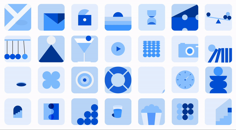 Pero las figuras no se quedarían ahí: serían las piezas de un puzzle para armar todos los íconos que irían dentro de la aplicación de Fintual, como un alfabeto visual que con elementos mínimos, nos permitiría componer imágenes con distintos niveles de complejidad. Es parecido a un puzzle de disección: un tipo de acertijo donde se divide una figura geométrica determinada en piezas que deben volverse a armar de cierta forma para conseguir otra figura específica.