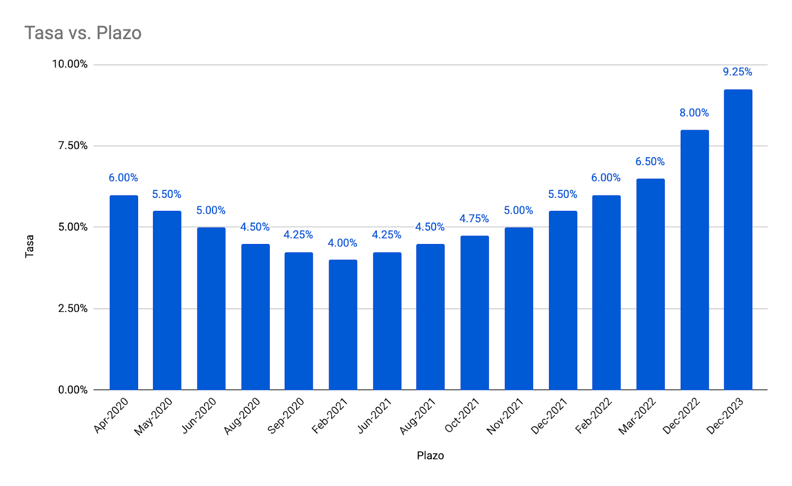 La mejor forma para aprovechar actualmente el alza en tasas de interés es buscar instrumentos de deuda de corto plazo, con vencimientos cortos. Si hoy vas y buscas cuánto te da un banco por tu dinero invirtiendo a un año, seguramente encuentres instituciones que te ofrecen el 6%, pero en 6 meses una vez que la tasa de Banxico sea más alta, de acuerdo al consenso de los economistas, podrás conseguir un mejor retorno. Si estás atado a un año no podrás negociar una mejor tasa de rendimiento.