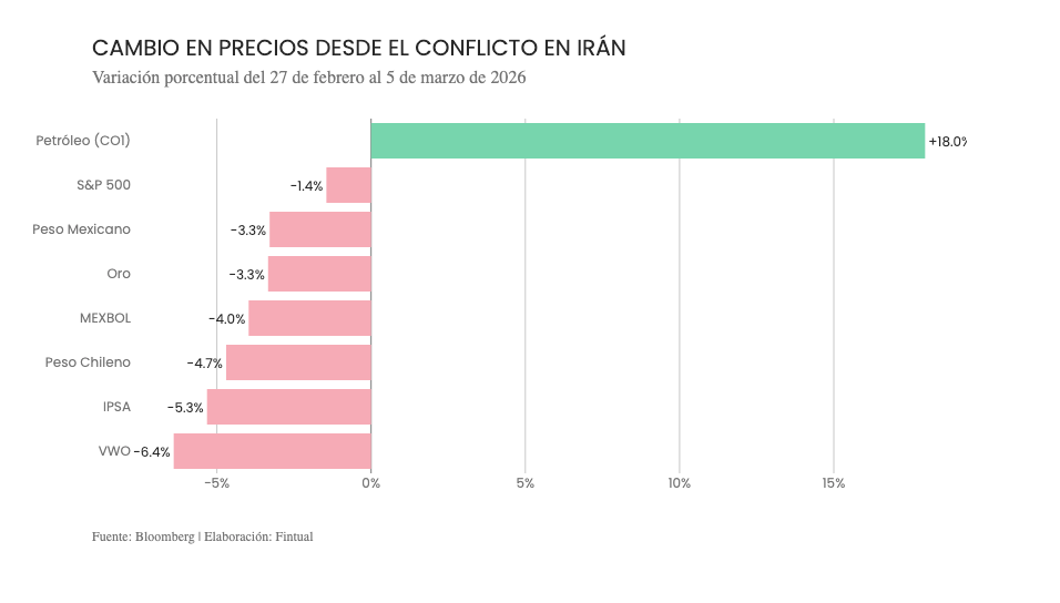 Trump ya dijo que el conflicto podría durar semanas. En el corto plazo es probable que haya presiones al alza en los precios de energía, en particular el petróleo y gas natural licuado. Hay afectaciones en el Estrecho de Ormuz, por donde pasa el 30% del comercio marítimo mundial de petróleo y el 20% del gas natural licuado. Además Qatar suspendió la producción de gas natural licuado en su mayor planta exportadora tras un ataque militar, lo que disparó los precios del gas en Europa. Esto podría mantener elevado el precio del petróleo. Los precios del gas natural también se han visto afectados por disrupciones en la producción de Catar.