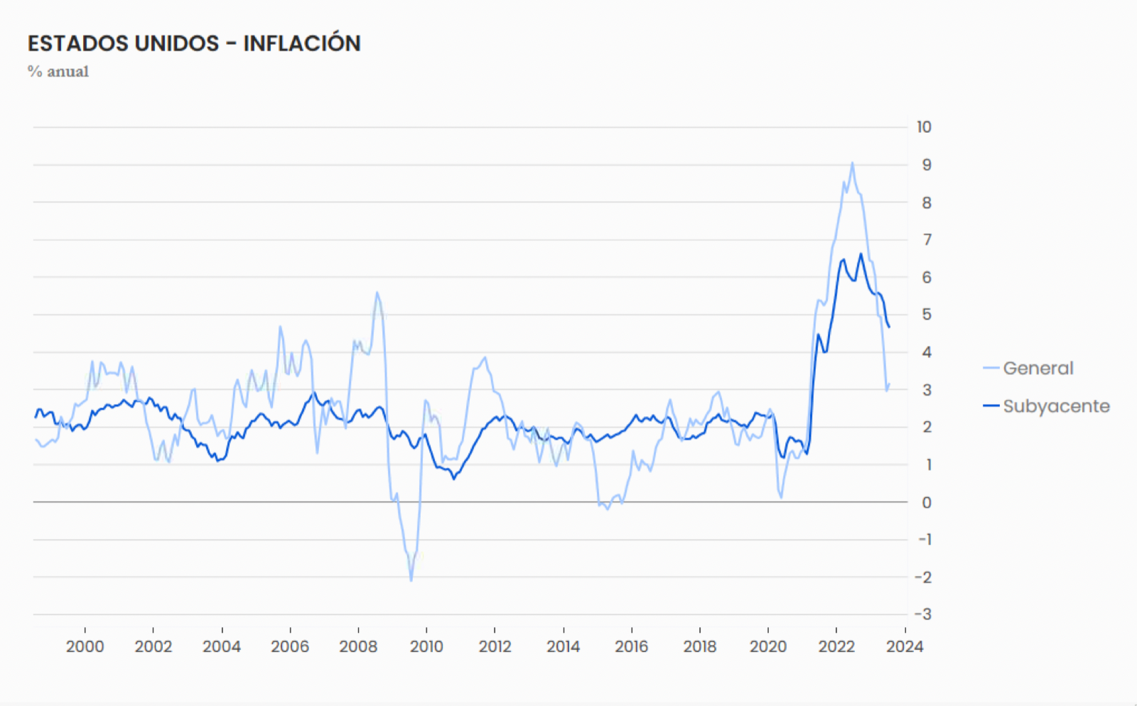 Los datos de inflación de julio en Estados Unidos trajeron algo de alivio, ya que hubo una muy ligera sorpresa a la baja. La general ascendió a 3.2%, desde 3.0% el mes pasado. Mientras tanto, la subyacente, que excluye alimentos y energía, descendió marginalmente, a 4.7% desde 4.8%.