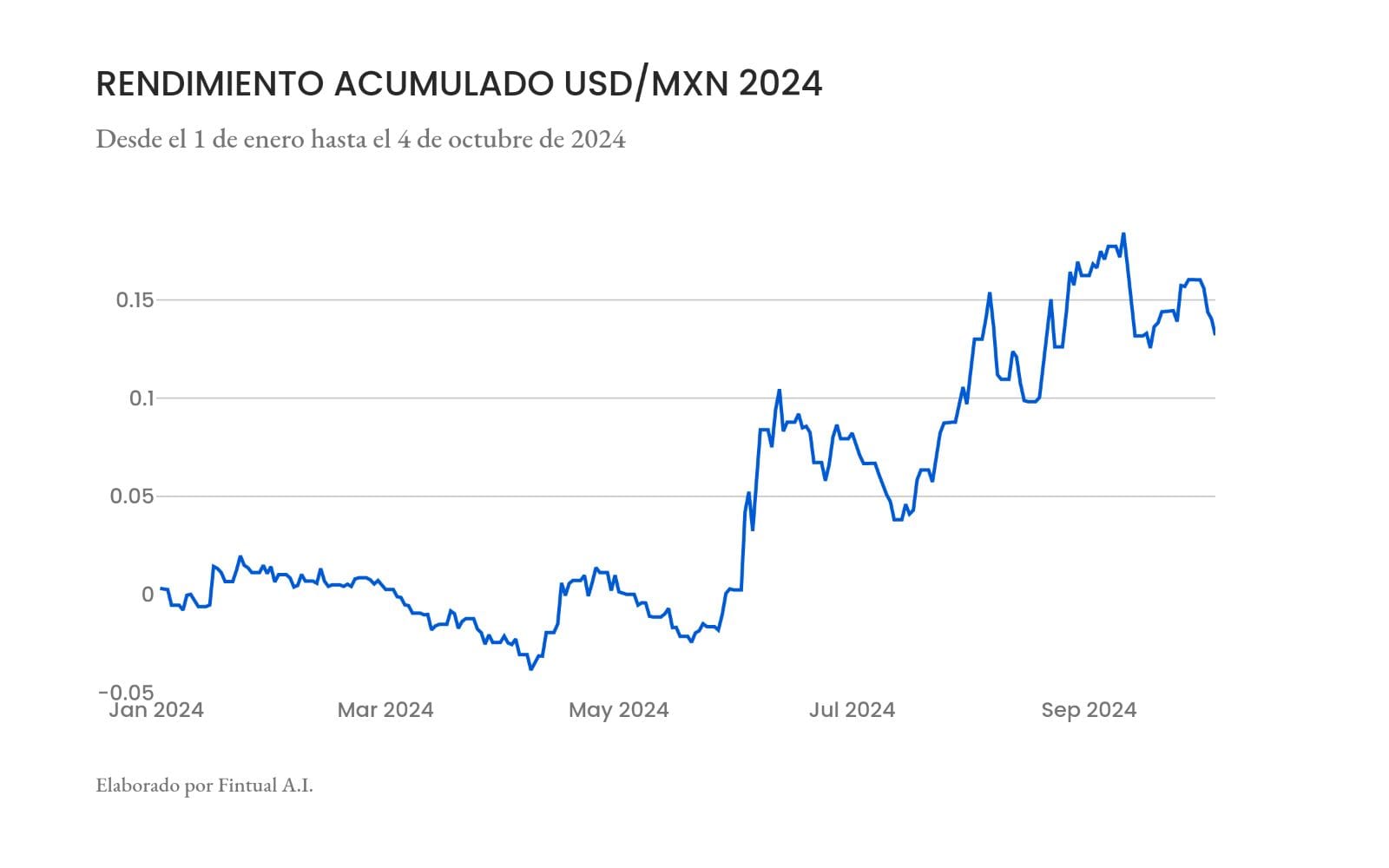 El MXN se ha recuperado cerca de 2.7% desde que Sheinbaum asumió, aunque sigue estando casi 12% más débil vs el dólar en lo que va del año.