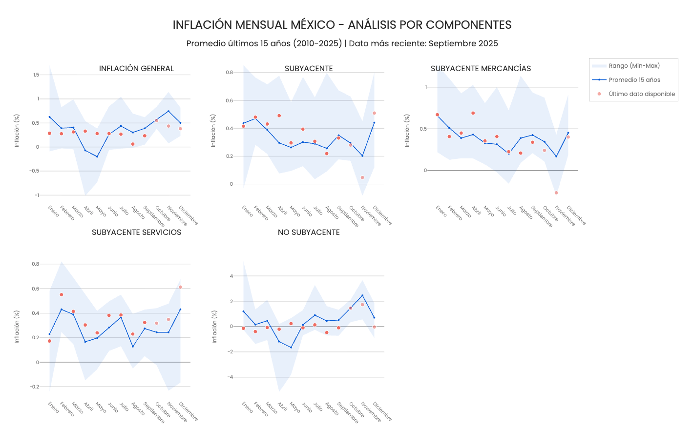 El jueves se publicó la inflación de septiembre en México. La inflación general avanzó 0.23% en el mes, ligeramente menos de lo que esperaba el mercado. Por su parte, la inflación subyacente aumentó 0.33%, en línea con las expectativas.