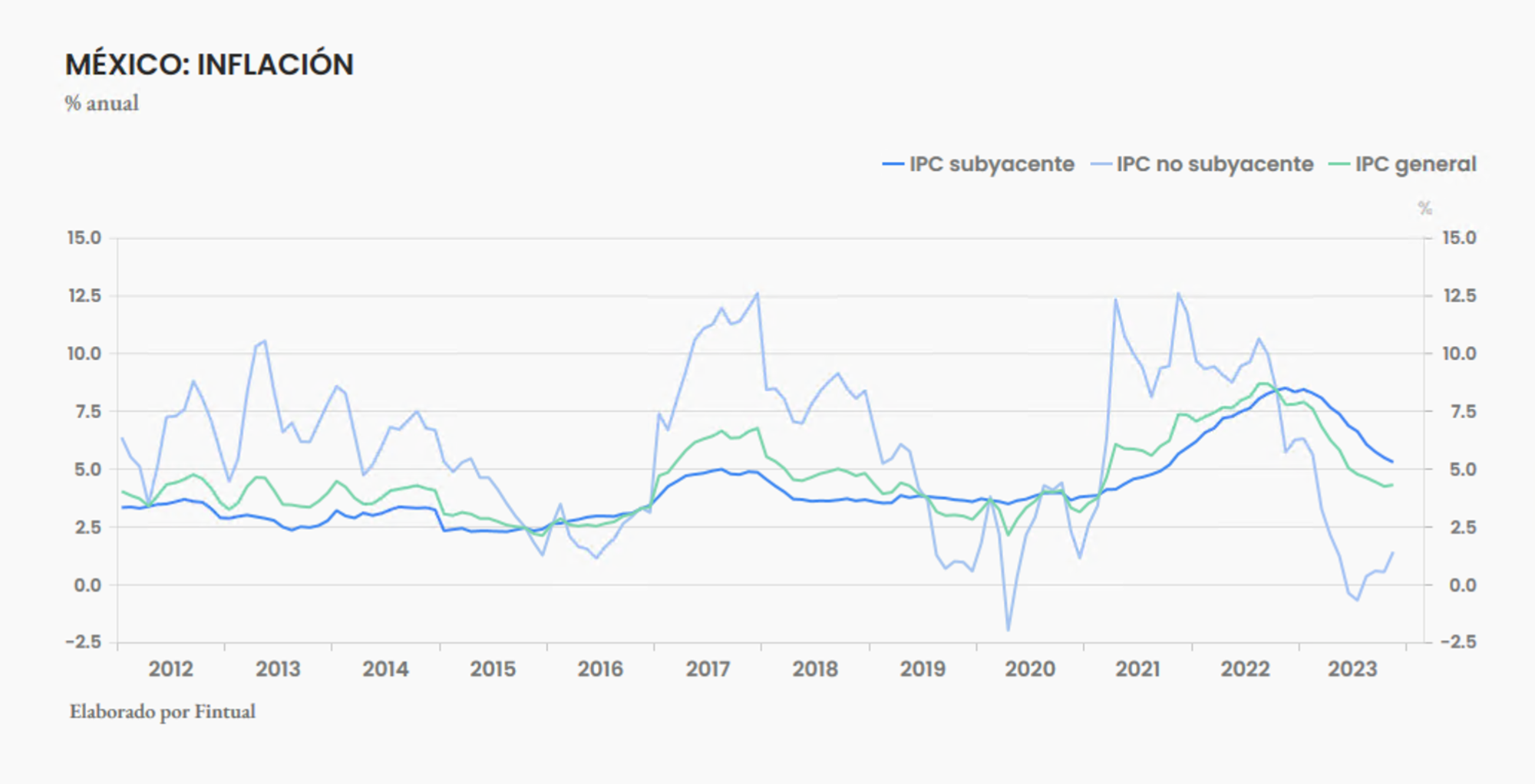 En términos anuales, la general subió, pasó de 4.26% a 4.32% debido principalmente a un aumento en los precios de los productos más volátiles. Pero el índice subyacente siguió bajando, de 5.50% a 5.30%.