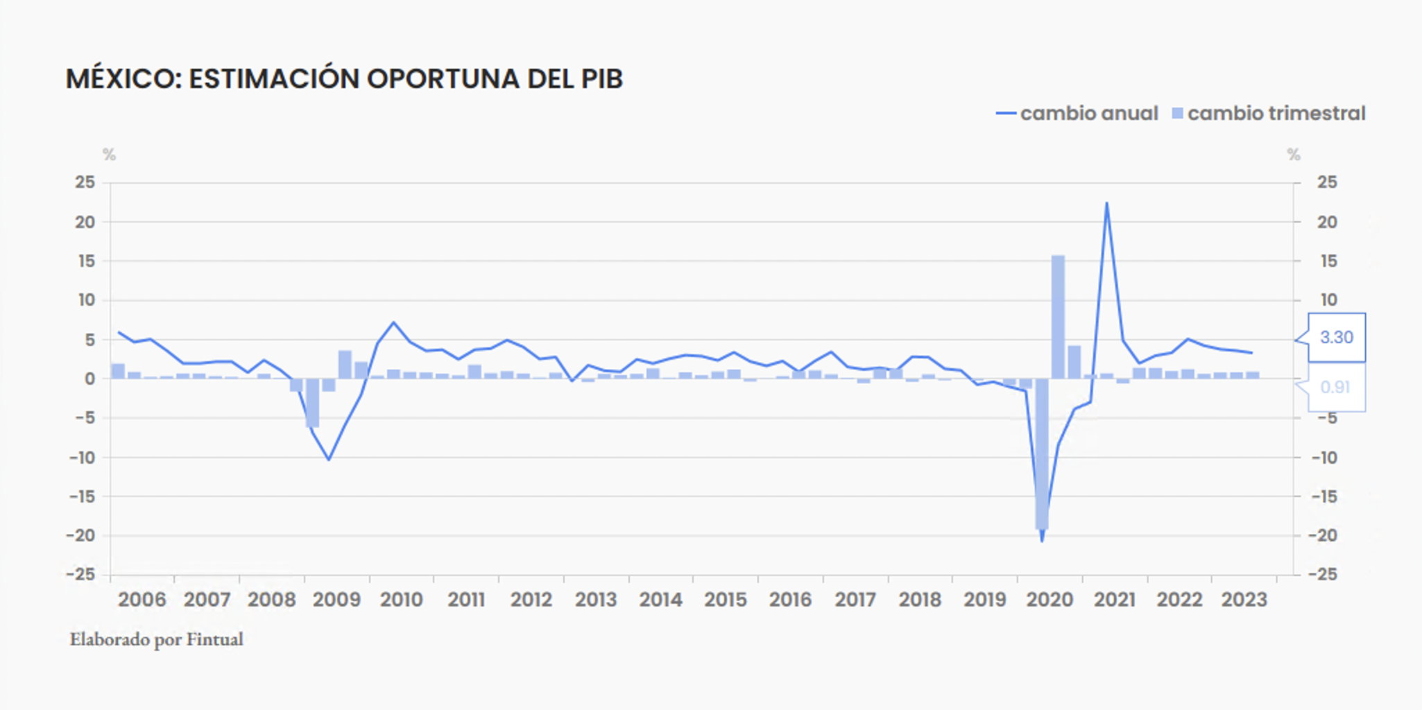 En México, el martes 31 de octubre se publicó la estimación oportuna del PIB del 3er trimestre. Una vez más, el dato sorprendió al alza. Esta es la primera estimación, lo que significa que está sujeta a revisión, pero estos datos preliminares indican que la economía creció 0.9% trimestral, e hiló 8 trimestres de crecimiento positivo. En comparación anual, aumentó 3.3%. El sector al que más bien le está yendo es el industrial, principalmente la construcción (por proyectos de gobierno y probablemente en parte nearshoring), aunque servicios y el sector agropecuario también andan bien.