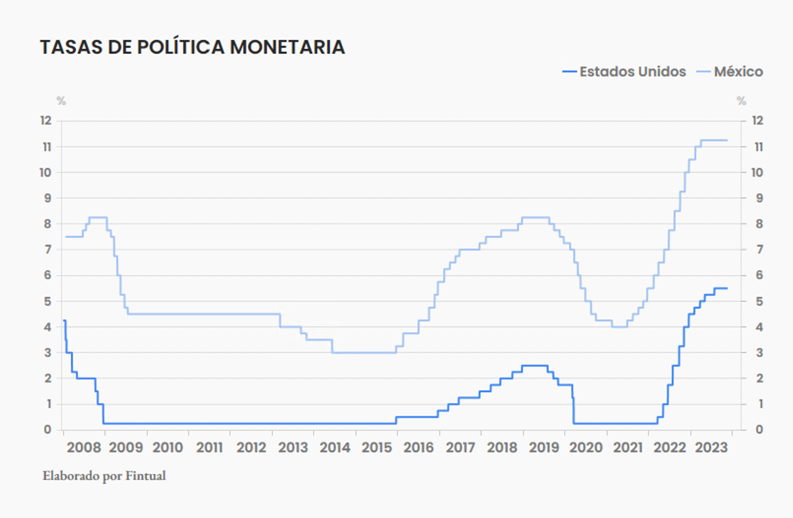 En México el jueves también se publicaron las minutas de la última reunión de política monetaria, cuando Banxico insinuó que no falta tanto para comenzar a recortar su tasa de política monetaria. El documento reveló que la entidad planea iniciar su ciclo de recortes el primer trimestre de 2024. Dicho eso, todos los miembros de la junta quieren que los recortes sean graduales y no necesariamente continuos. Hoy por hoy, el plan de Banxico parece ser que la política monetaria se mantenga en terreno restrictivo durante todo el 2024 y 2025. Eso significa que no esperan llevar la tasa de política monetaria por debajo de 5.6% nominal.