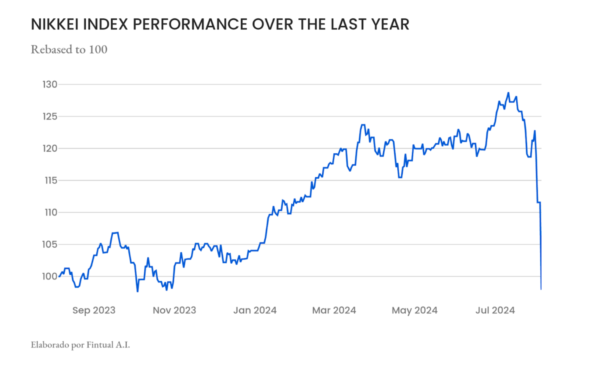 Como resultado de la apreciación del yen, gran parte de las acciones en el mercado japonés sufrieron una caída significativa. Cabe destacar que las empresas más grandes de los índices japoneses, como el Nikkei o el Topix, son exportadoras y les conviene tener un yen más depreciado. Como resultado, la bolsa en Japón ha acumulado una caída del 25%, borrando toda la rentabilidad obtenida durante el último año.