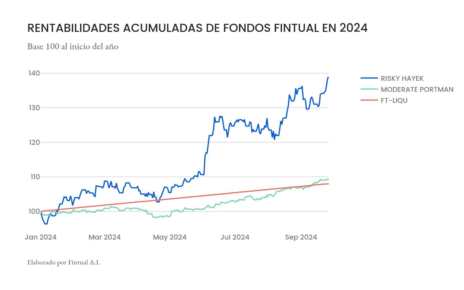 Las buenas novedades en los mercados, sumados a la depreciación del peso que se ha reiterado en la última semana, han llevado a nuestros fondos Risky Hayek y FT-LIQU una vez más a nuevos máximos históricos, siguiendo la buena racha que han mantenido en lo que va de 2024. Tan solo en la última semana, Hayek anotó un rendimiento de casi 3%.