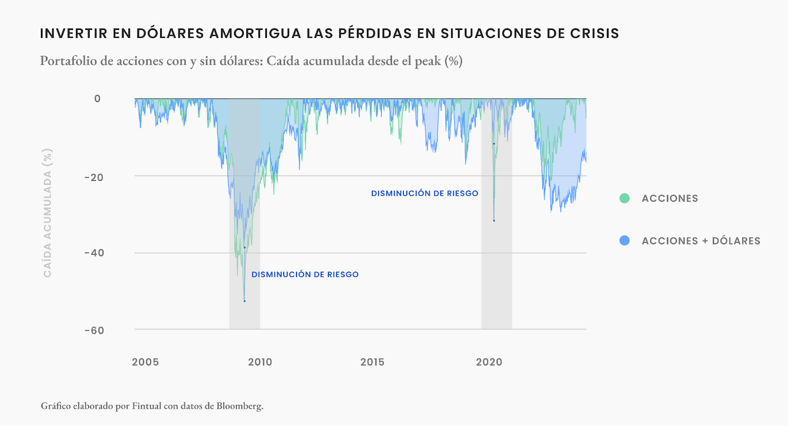En general los dólares tienden a apreciarse cuando los activos de riesgo caen (como las acciones).