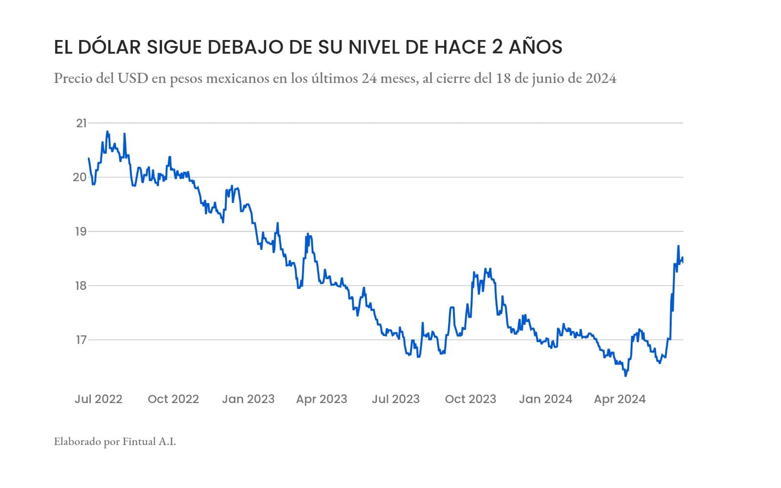 Exactamente dos años después, en 2024, el dólar cerró en 18.41 pesos. Un 9.4% más barato.