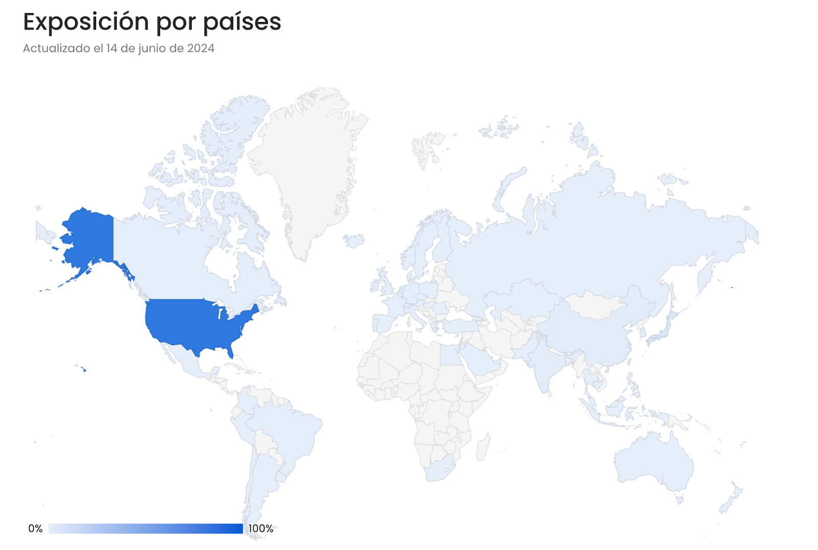 Esto aplica también geográficamente: Risky Hayek no invierte sólo en EE.UU., si no que tiene exposición a muchos países.