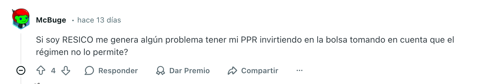 Realmente, en RESICO no deberías invertir en renta variable. Lo que depende de persona a persona es que algunas tienen otras formas de ingresos específicas que sí les permitirían utilizar un PPR.