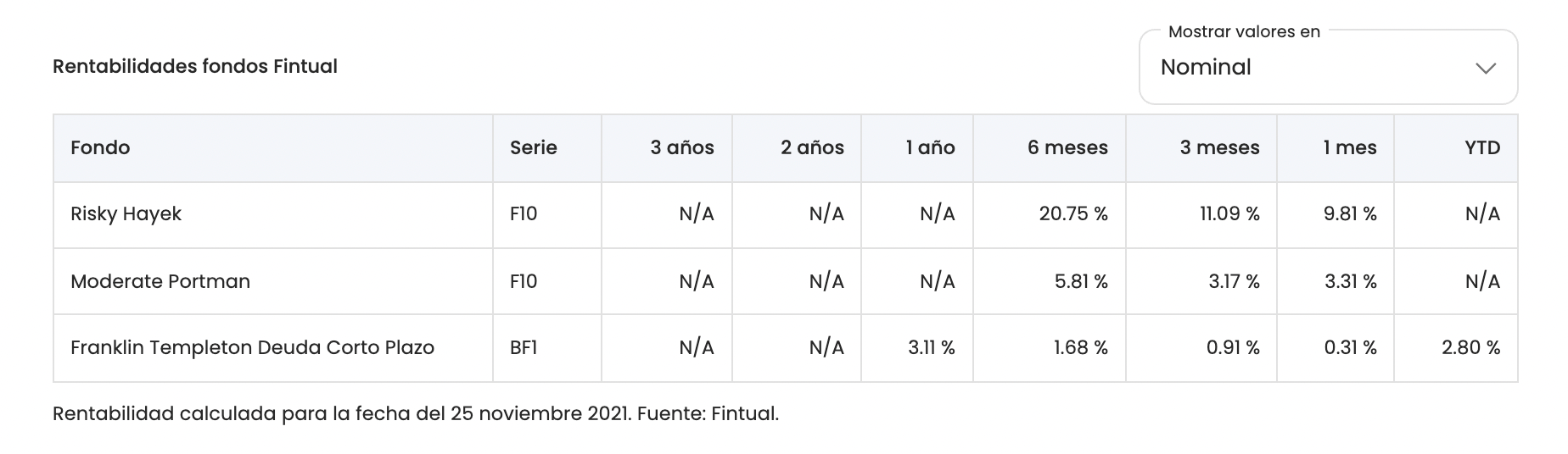 Te mostramos la tabla de rentabilidades que han obtenido nuestros fondos en México hasta ahora:
