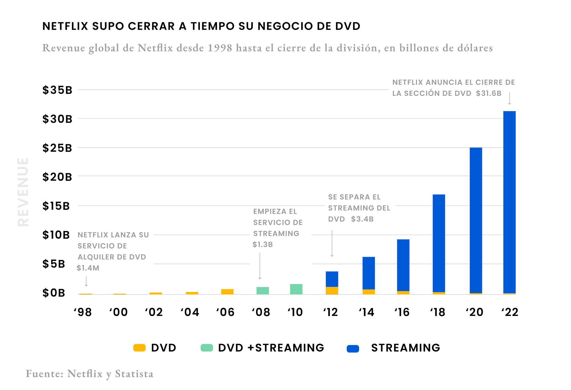 Entrados en la segunda década del siglo XXI, esta área de la empresa no hizo más que achicarse. El año pasado la división de DVDs de Netflix (sí, seguía activa aunque no lo creas) cerró para siempre.