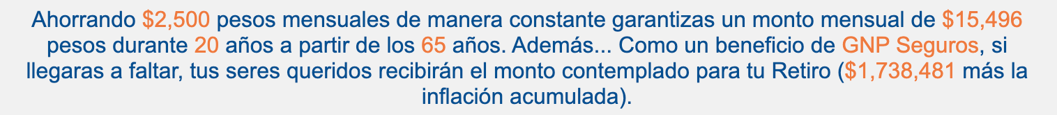 Si no me crees, te dejo algunas simulaciones de una inversión de $2,500 al mes (en un fondo balanceado) durante 25 años en un par de seguros de ahorro para el retiro: