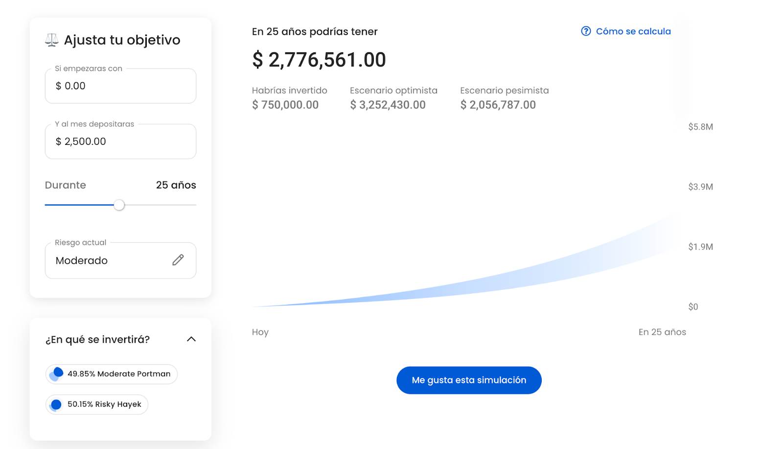 Ambas cantidades son menores a un plan de inversión moderado en Fintual según la siguiente simulación: