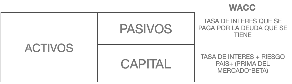 Una vez conociendo el costo de oportunidad sobre tu capital, también conocido como costo de capital, y dependiendo de la estructura que tenga tu empresa (% de pasivos y % de capital) obtenemos el WACC (weighted average cost of capital, que en español significa costo medio ponderado del capital): el costo de capital específico para tu empresa.