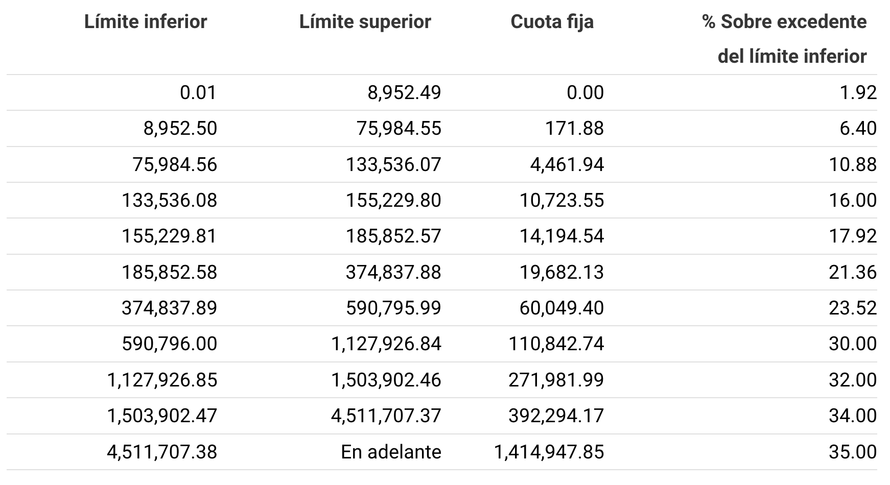 Esta es la tabla de Impuesto Sobre la Renta (ISR) de 2023.