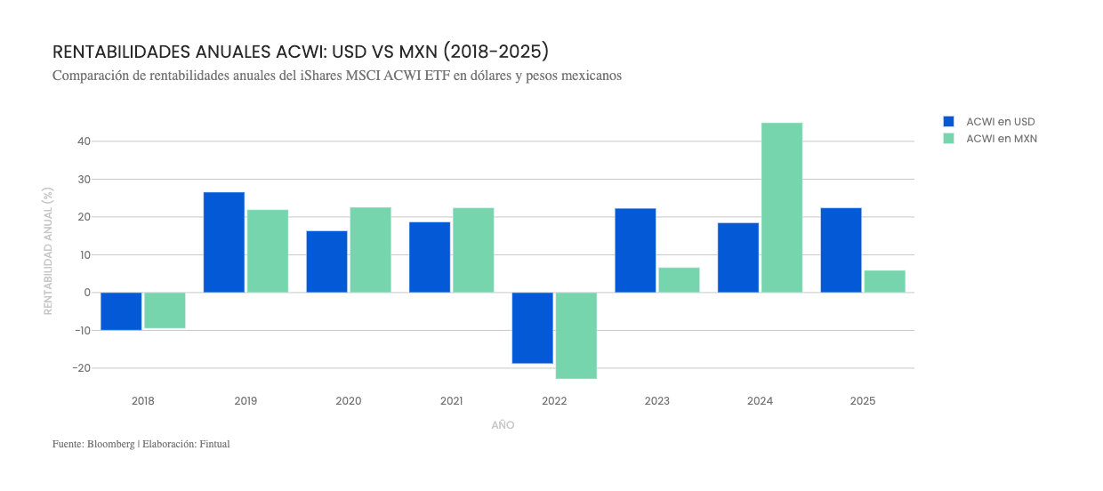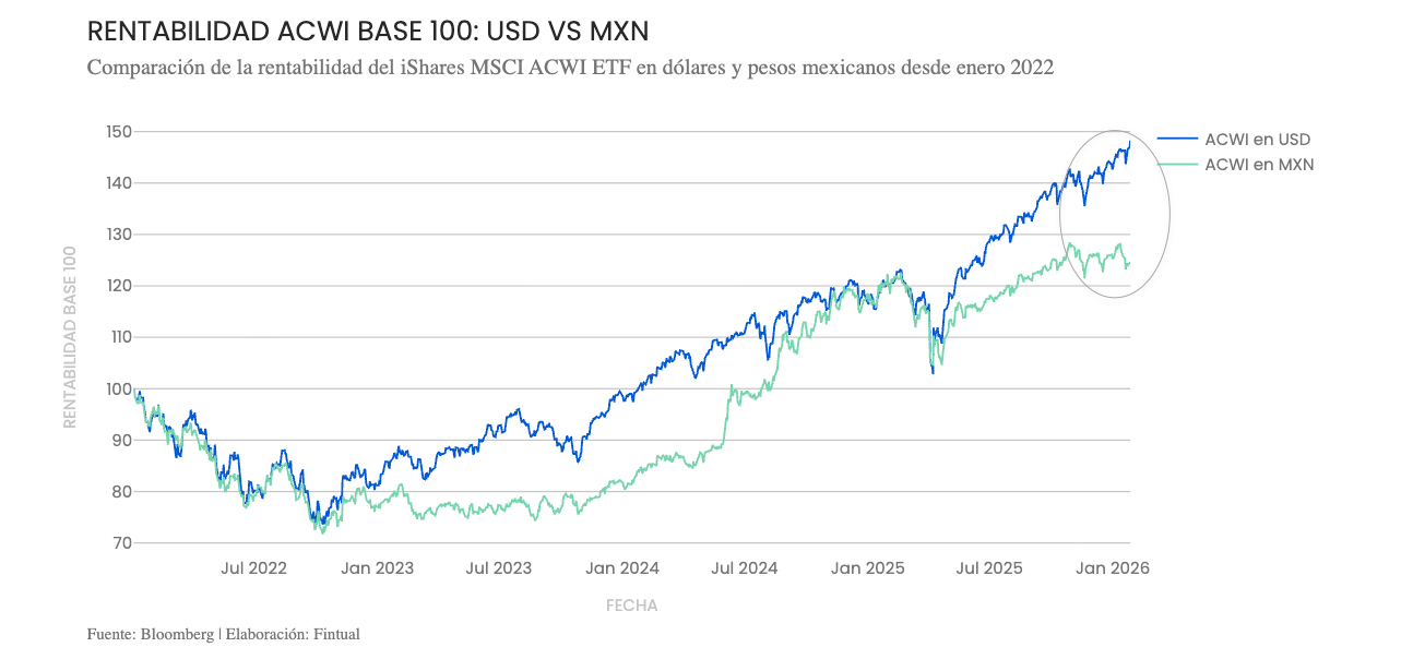 Y respecto de las inversiones, algunas veces la rentabilidad de inversiones dolarizadas es mayor expresada en pesos mexicanos que en dólares, como lo fue durante 2024, y otras veces pasa lo contrario, como durante 2025.