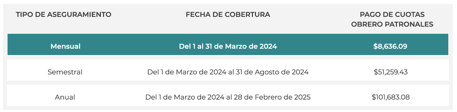 Ejemplo: para una profesionista independiente en el sector de informática (desarrollador de software) que se registre con un salario de $50,000 al mes, la cuota sería aprox. $8,636 al mes.