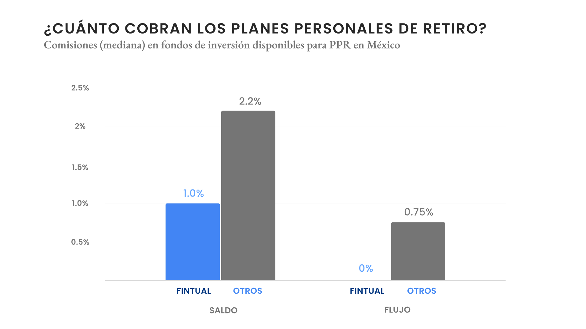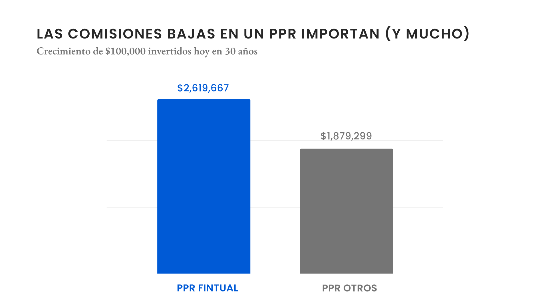 En Fintual, esa comisión es de 1% anual. En otros PPR de este estilo, esa comisión ronda el 2% - 2.5% (sí, el doble o más).