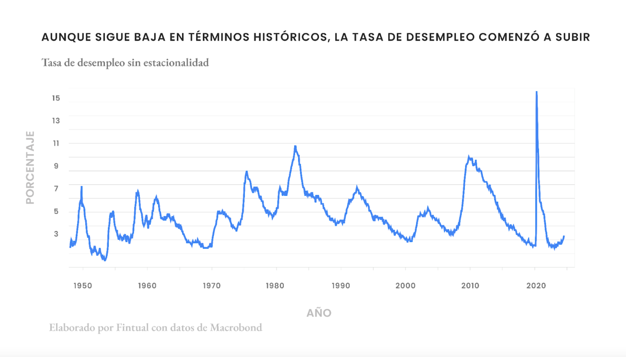 Por otro lado, la tasa de desempleo subió de 4.1% a 4.3%, aunque parte de este incremento se explica por un aumento en la tasa de participación laboral, lo cual no es necesariamente un reflejo de debilidad.
