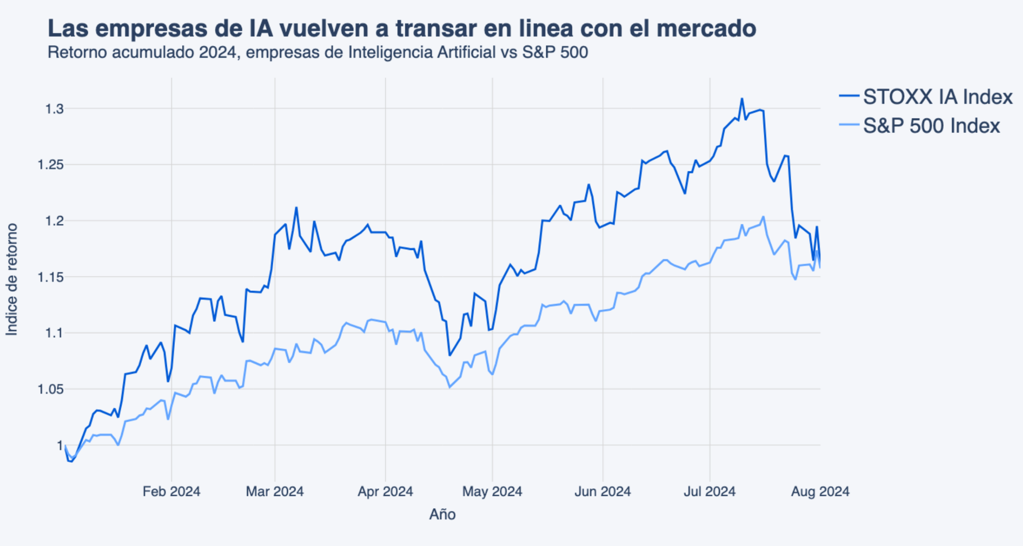 En primer lugar, las utilidades derivadas de los servicios de IA han sido levemente menores a lo esperado por el mercado, como es el caso del servicio de Intelligent Cloud de Microsoft y de AWS de Amazon. Por otra parte, todos los proveedores de servicios cloud están mostrando la necesidad de hacer inversiones de capital masivas en infraestructura, sobre todo la compra de chips especializados para modelos de IA (llamados GPUs), lo que pone mayor presión en sus márgenes y rentabilidades en el mediano plazo.
