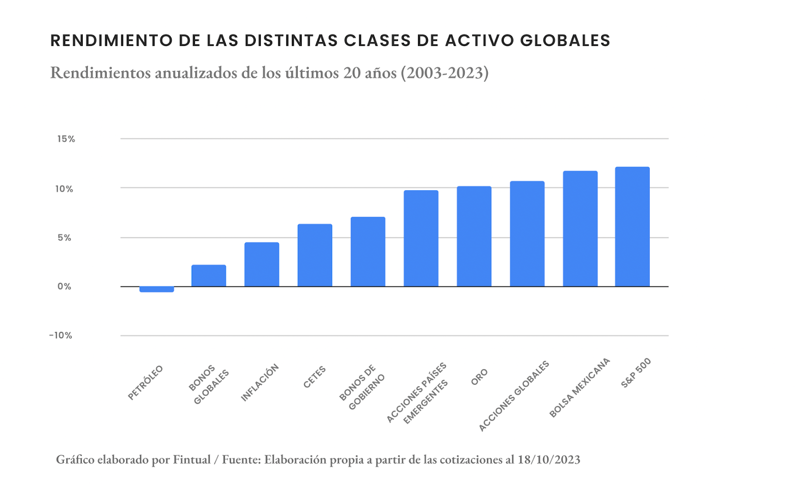 Acá puedes ver el rendimiento histórico que han obtenido diferentes clases de activos en el pasado, para que tengas una idea de rendimiento de cada tipo: