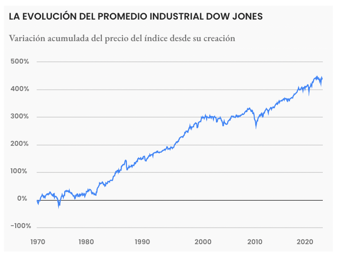 A finales del siglo XIX, Charles Henry Dow, un periodista estadounidense, se dio cuenta que el precio de las principales empresas de Estados Unidos se movía bastante al unísono. Después de graficar sus movimientos y ver que, efectivamente se movían en conjunto, decidió crear un promedio ponderado de sus precios al que llamó índice de Dow Jones (o Promedio Industrial Dow Jones). Charles había creado, 7 años antes, el Wall Street Journal. Un pionero en simplificar la información financiera.
