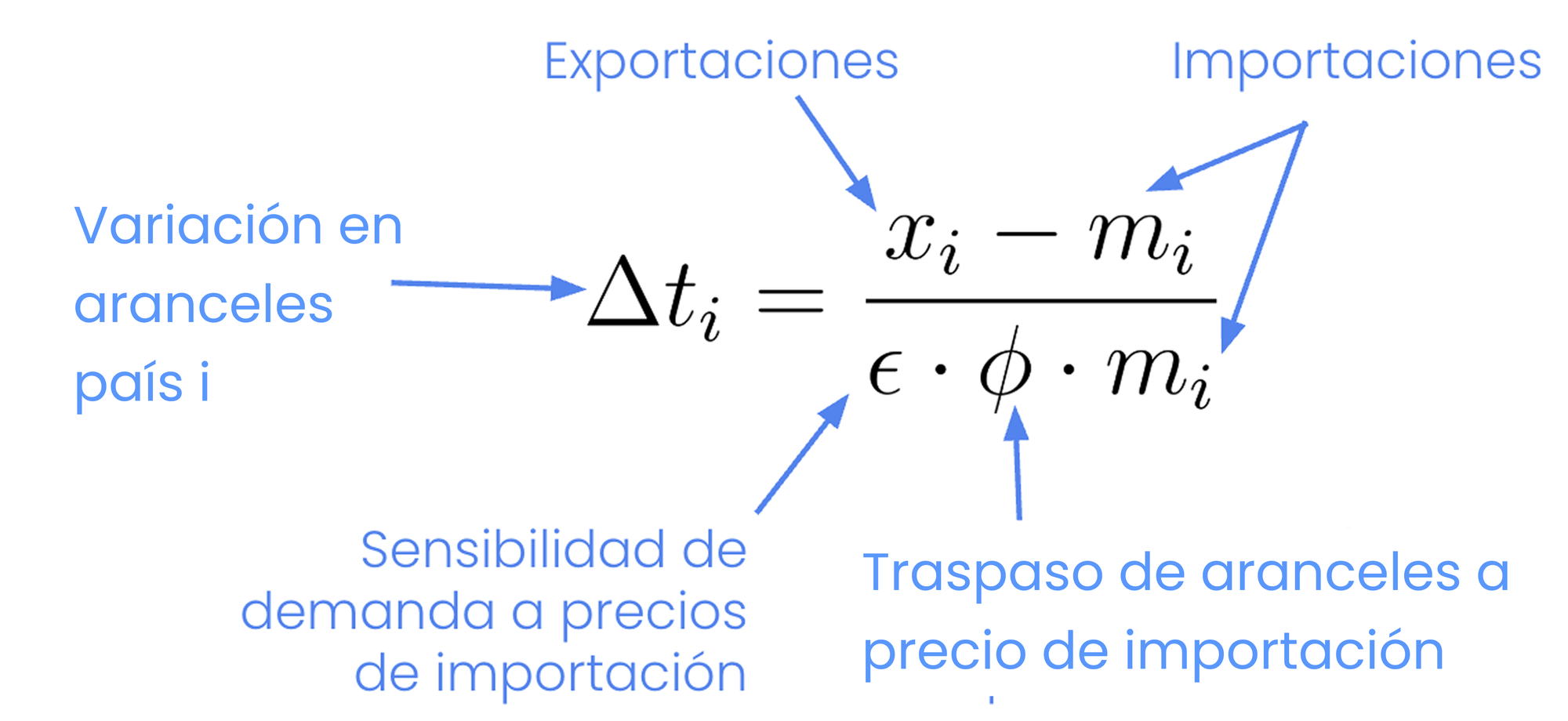 Por el lado izquierdo, el multiplicar los aranceles por su factor de traspaso a precio de importación y la sensibilidad de la demanda implica que el lado izquierdo responde a cuánto caería la demanda de un bien como producto de una alza de aranceles.