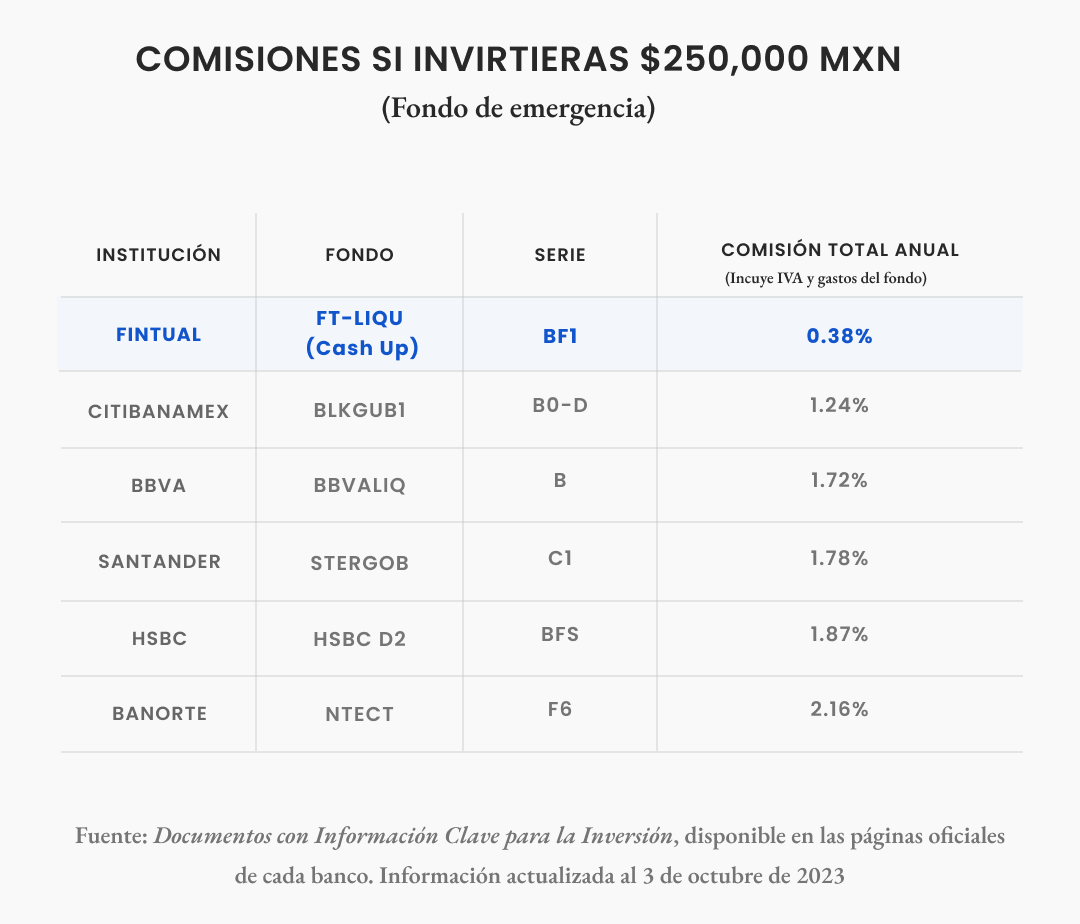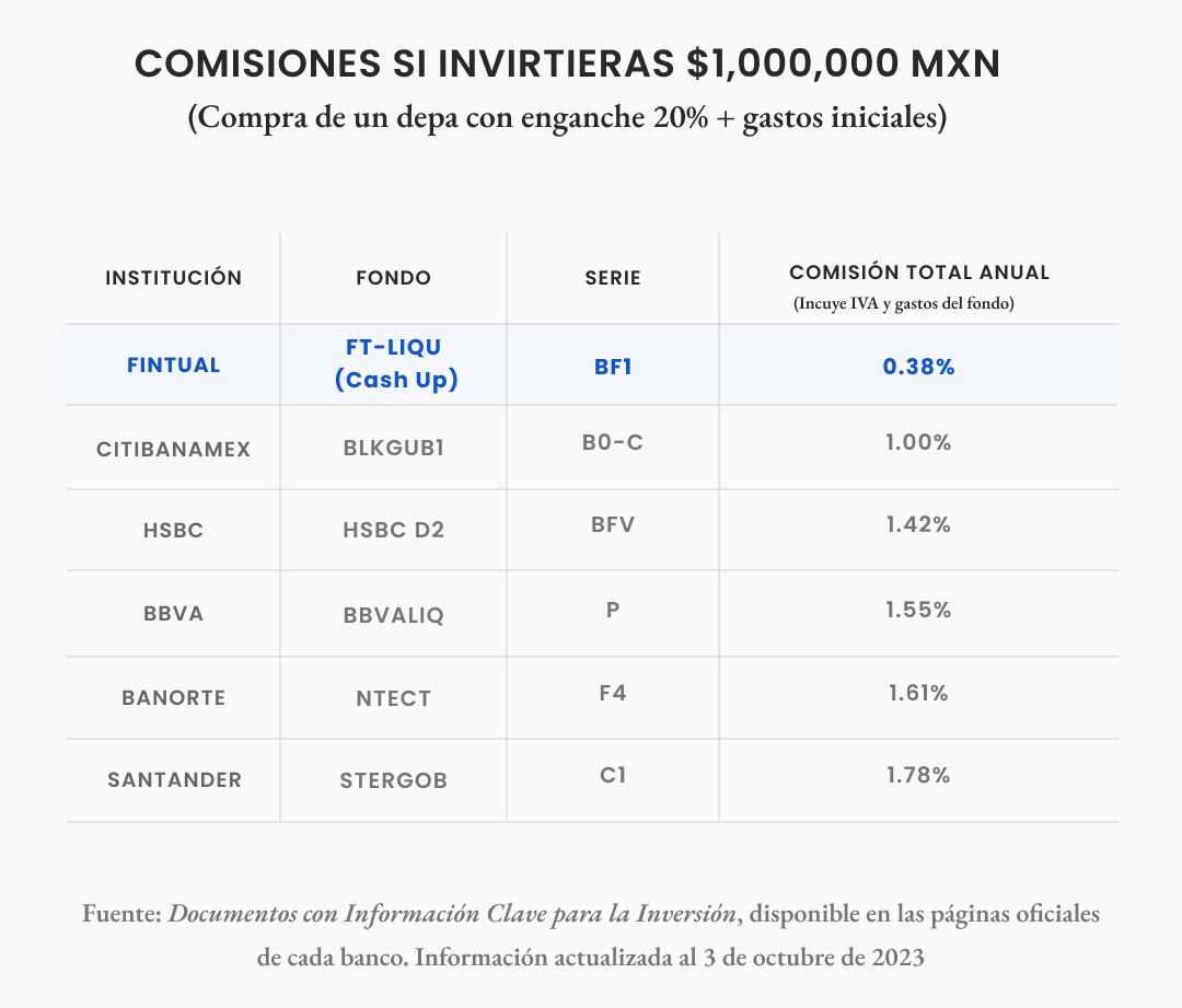 Por ejemplo, acá puedes ver la comisión anual por invertir $1,000,000, equivalentes a un enganche y gastos iniciales de comprar un departamento o casa.