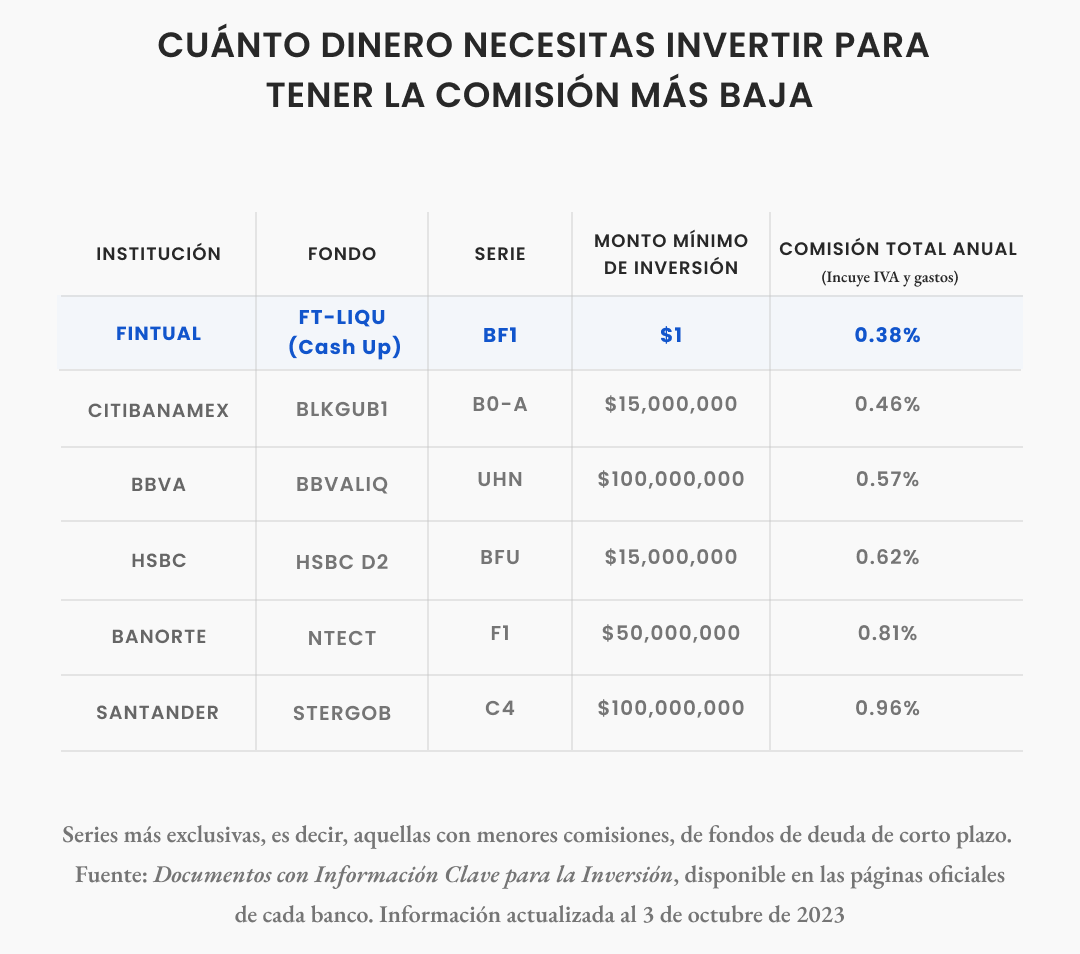 Analizamos las comisiones de los fondos de inversión de deuda gubernamental de corto plazo más populares en cada uno de los 5 bancos principales en México.
