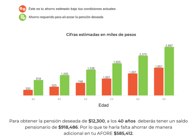 Pero antes de entrar en pánico, también puedes hacer una estimación interactiva aquí y calcular cuánto tendrías que ahorrar en tu Afore para retirarte con un ingreso en específico.