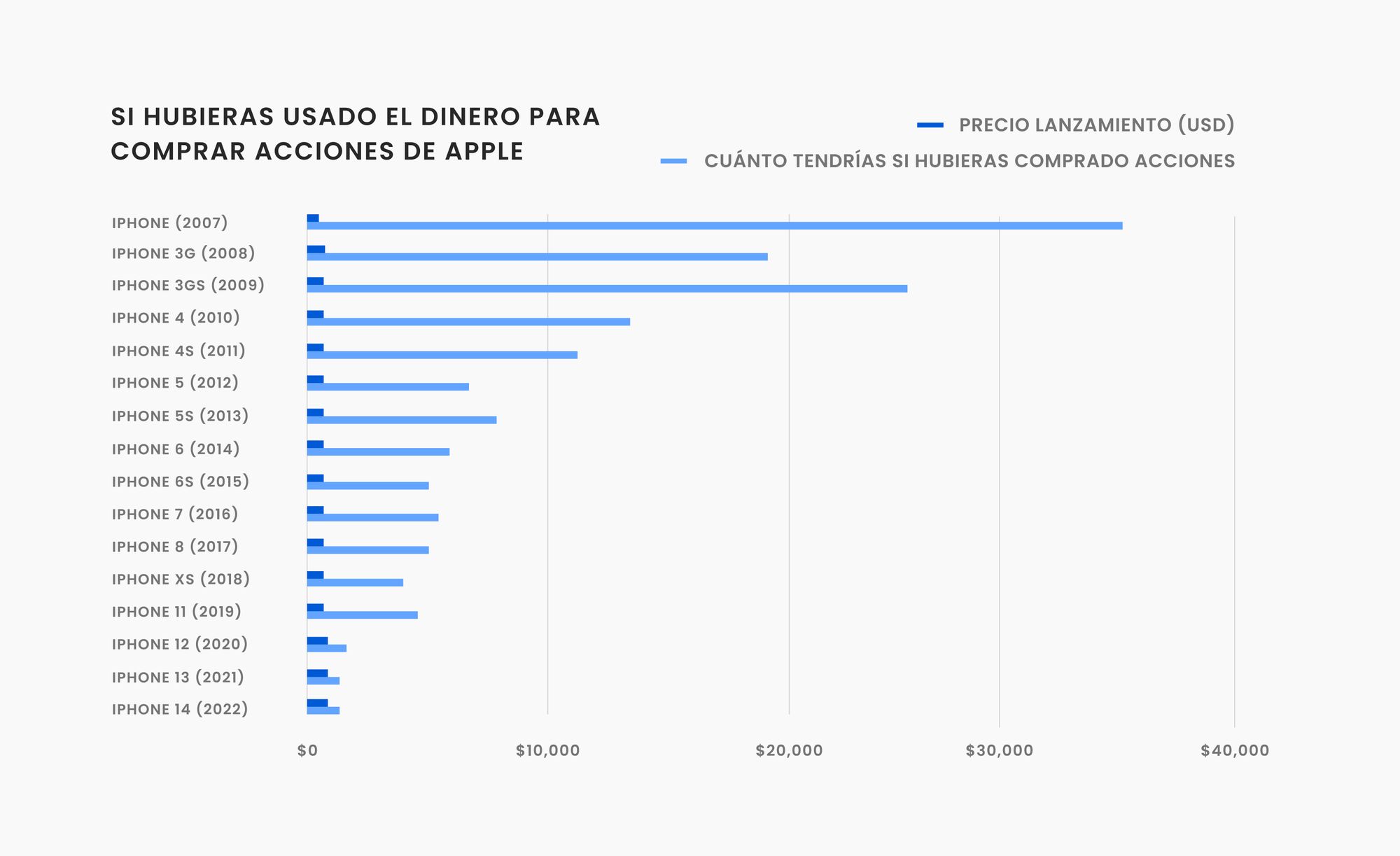 También es importante tener en cuenta que esto es lo que ya pasó, y no significa que vaya a seguir pasando, o sea que no somos tontos si en el futuro nos volvemos a comprar un iPhone en lugar de invertir en acciones de Apple, ni mucho menos.
