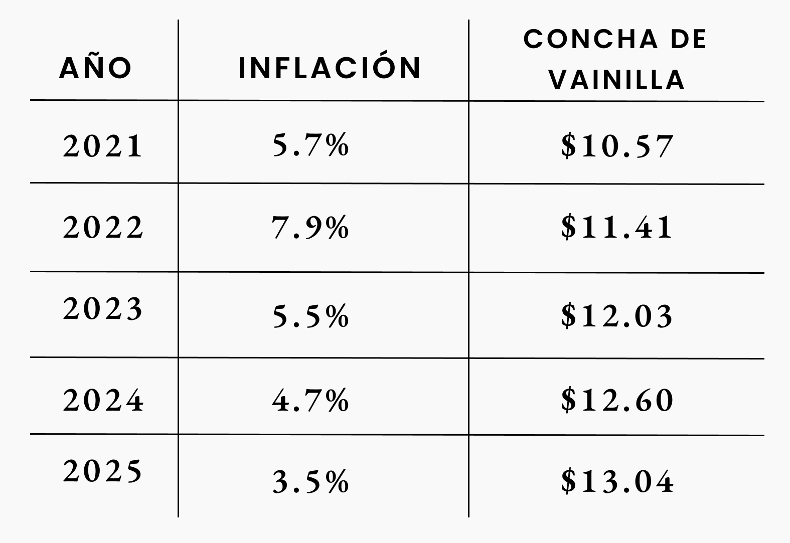 Según la RAE (aii ya bien brindis de boda), inflación se define como la acción y efecto de inflar (duh) y también como la “Elevación del nivel general de precios.” Eso significa que si el año pasado una concha de vainilla costaba $10 y la inflación anual fue de 5%, en promedio hoy costaría $10.50.