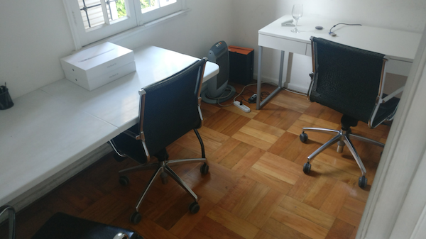 Era prácticamente un clóset que estaba detrás de la cocina, pero al menos nos salía cero peso. Pedro y yo compartimos esta oficina por más de un año (Agustín tenía una oficina más rica en el segundo piso). Le decíamos “el cuchitril” de cariño. Una vez me fui de vacaciones y justo entraron a robar a la oficina de Platanus. Estaba asustado porque tenía mi teclado y mi pantalla en “el cuchitril”. Pero no pasó nada, probablemente porque los ladrones no pensaron que había cosas de valor adentro de ese clóset. Creo que a Agustín sí le robaron su pantalla, jaja.