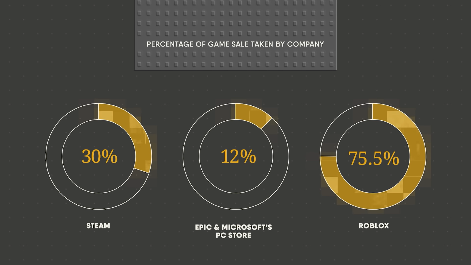 Sin embargo, no ha estado exento de polémica: de acuerdo a un reportaje realizado por People Make Games, los jugadores solamente reciben un 25% de las ganancias que generan sus juegos para la compañía. En comparación, los desarrolladores que deciden publicar sus juegos en Steam reciben un 70%, en Epic Games un 88%, y en plataformas independientes como Itch.io el 90% (aunque también permite que el vendedor decida). Teniendo en consideración que la comunidad genera casi todo el contenido y la edad promedio de sus usuarios, no le hace favores a la reputación de Roblox. Más aún cuando su sistema de microtransacciones y la falta de moderación en su contenido han estado en el ojo del huracán en los últimos años.
